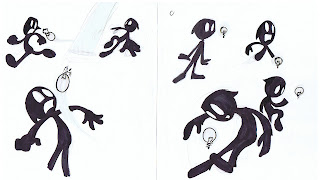 Eventually it became a story about a little shadow who's wandering around one day when he finds a little glowing light bulb. He reaches out to touch it and the light burns his hand off. Once the light bulb has a taste for shadow flesh it starts chasing him around and stuff. Then the shadow...